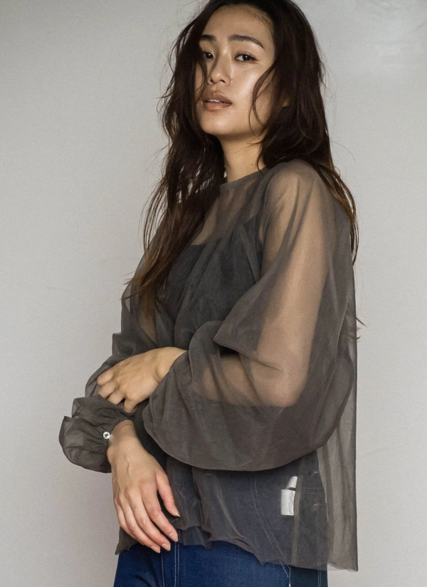 大人の肌見せに魅了される甘過ぎないボリュームスリーブチュールブラウスです🫧