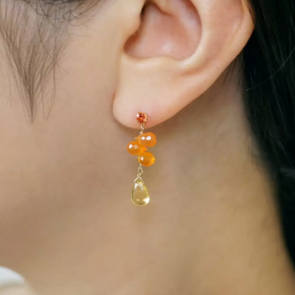 カーネリアンを3石連ねてシトリン(11月誕生石)