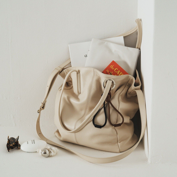 シーズンレスで使えるスクエアボストン型のショルダーバッグ。