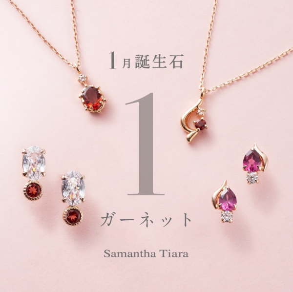 ガーネットにも色味は様々です。サマンサティアラでは深い赤色のガーネットと、