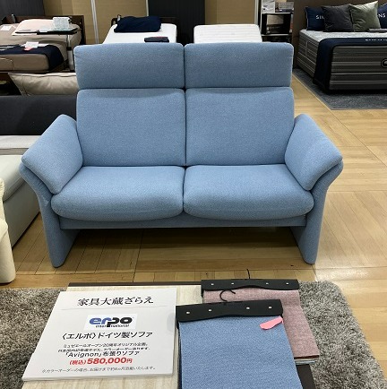 ドイツ製ソファのエルポからはリクライニング機能の2人掛けのご紹介です。ドイツ伝統の技と