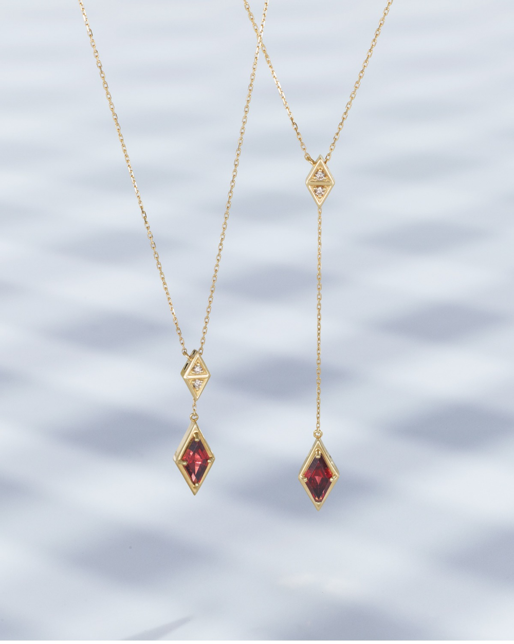 ネックレスのトップはY字ラインにも変化する2wayタイプ。