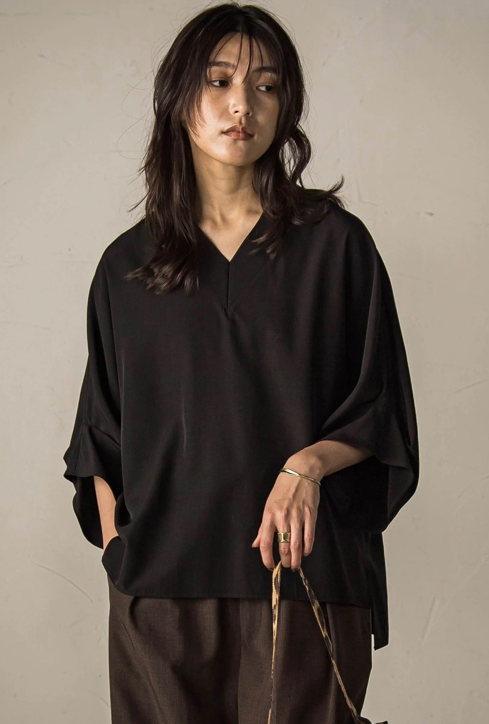 手洗い可能!タックワイドスリーブVネックドルマンブラウス